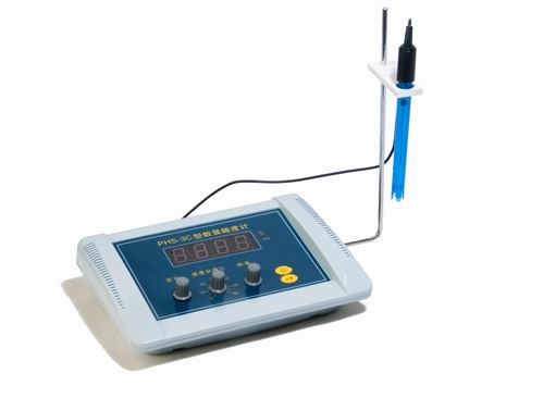 ①定位:pH/mV開關(guān)調(diào)置pH檔,pH復(fù)合電極與儀器相接。把用去離子水清洗干凈的電極插入pH6.86的標(biāo)準(zhǔn)緩沖溶液中,調(diào)節(jié)溫度補(bǔ)償調(diào)節(jié)器致25℃,使其指示溫度與標(biāo)準(zhǔn)溶液的溫度相同,調(diào)節(jié)儀器“定位”調(diào)節(jié)器,使儀器顯示的pH值與該溶液在此溫度下的標(biāo)準(zhǔn)值一致(見附表)。